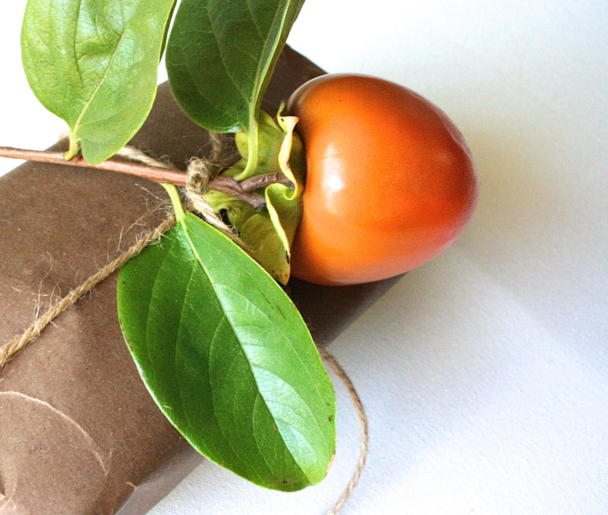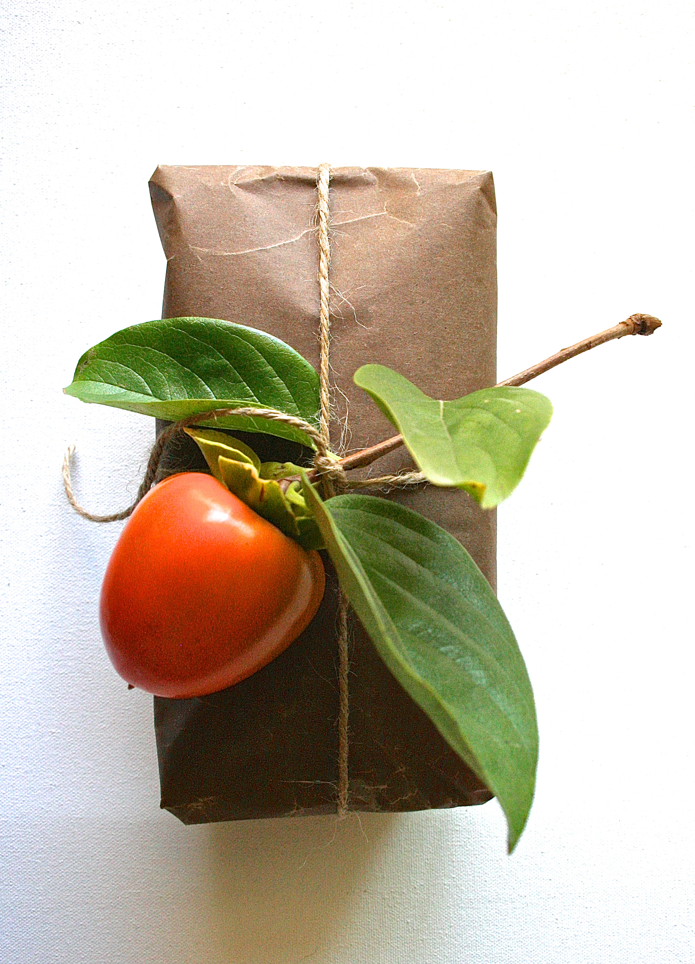 I have previously posted recipes for persimmon bread and chocolate chip cookies. Here are a couple of ways to package them up for gifts. I like simple and natural. One can do a lot with twine and some kraft paper.