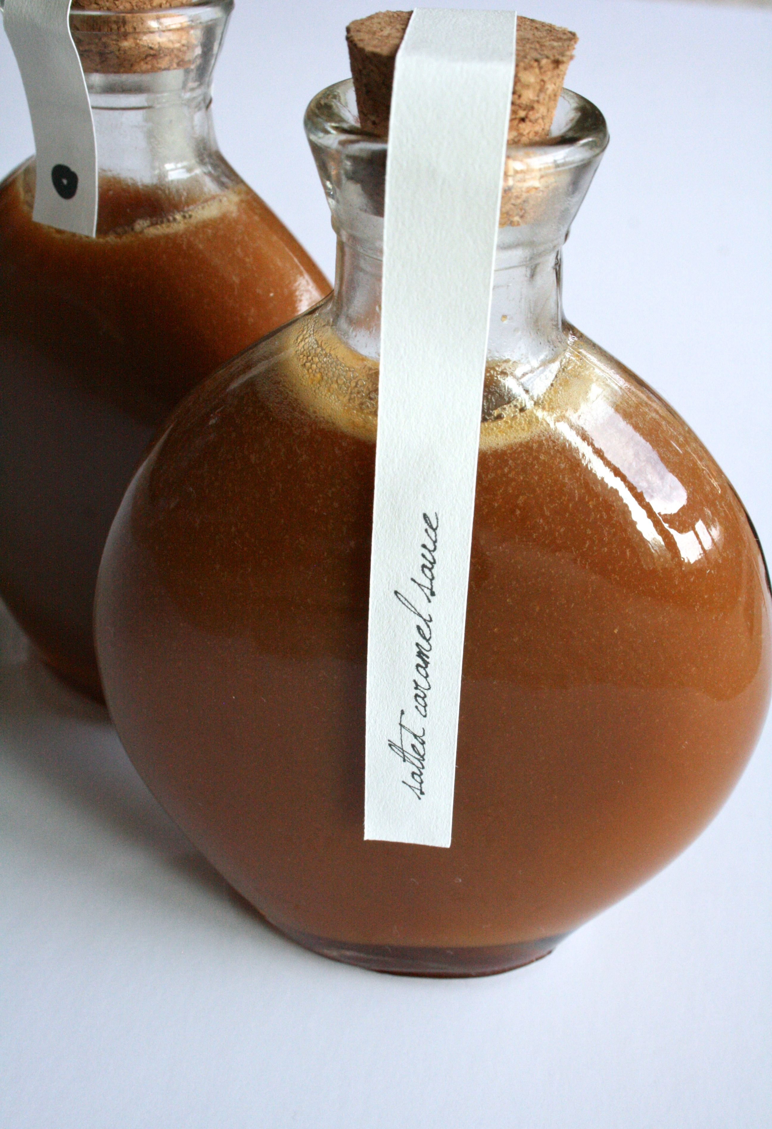 Here’s the salted caramel recipe I used from Meals Full of Color. It’s serious deliciousness. I had to exercise some major self-control to keep myself from downing a whole jar. Salted Caramel Sauce (adapted from Meals Full of Color) 1 cup sugar 1/4 cup water 3/4 cup heavy cream 3 1/2 tablespoons unsalted butter 1 teaspoon fleur de sel (if you do not have this use good quality sea salt) In a heavy-bottomed pot, combine the sugar and water over medium-low heat until the sugar dissolves. Increase the heat to medium-high and bring to a boil, without stirring the sugar mixture. If necessary, use a wet pastry brush to push down any sugar crystals that are on the side of the pot. Boil until the syrup is a deep amber color, about 5 to 6 minutes. Remove the sugar from the heat and carefully whisk in the heavy cream (it is going to bubble up). And when I say carefully I REALLY mean carefully. I’ve burned myself a few times with this step. Stir in the unsalted butter, and salt. Transfer the caramel to a jar and allow to cool on the counter. This sauce will keep for about 2 weeks in the refrigerator. You can just heat it up when you want to use it and place it back in the refrigerator when you are done.