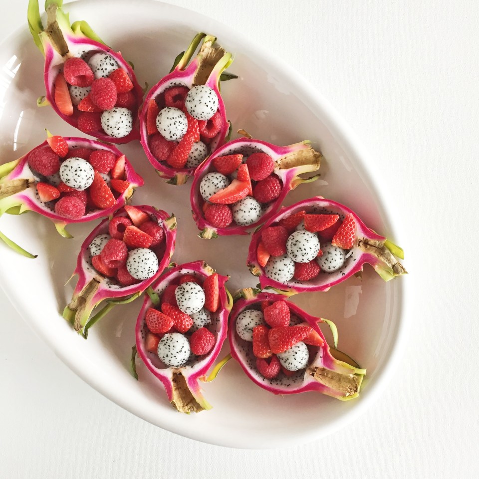 Aren’t the dragon fruit cups fun? To make the dragon fruit cups: