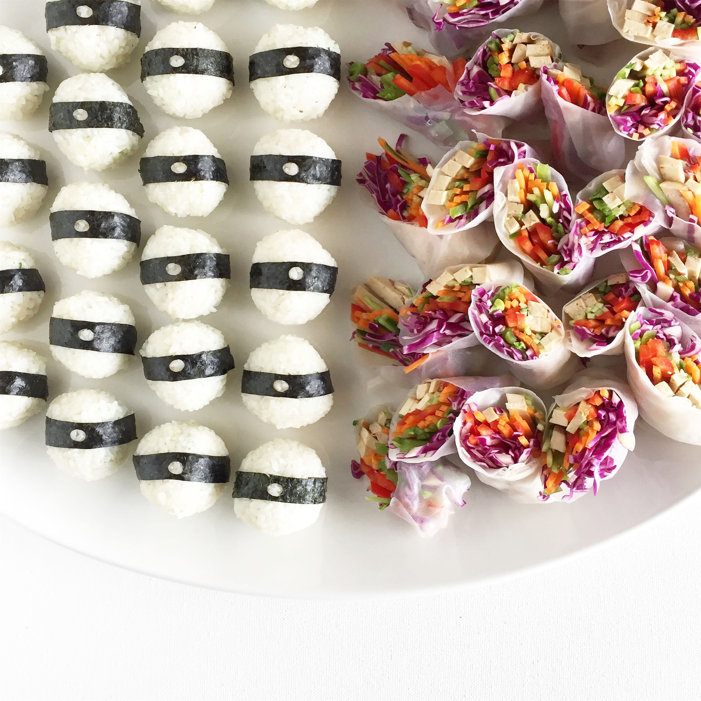 Onigiri and Vegetable Spring Rolls