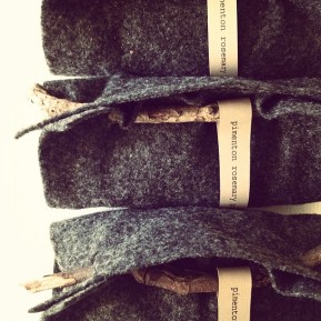 This project was for a hotel for their client holiday gift. The gift consisted of roasted pimenton (smoked paprika) rosemary nuts wrapped in felt and cinched with a twig. Simple, organic and elegant.